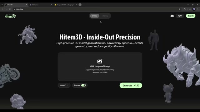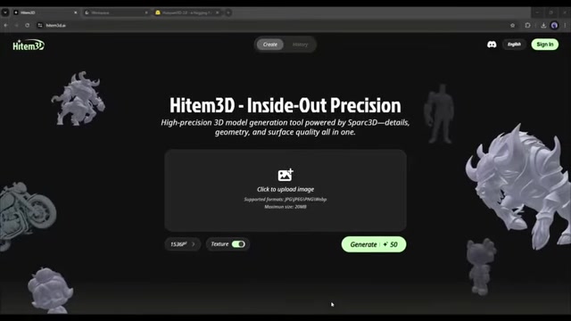 To begin, you'll need to create an account. Simply click on the "Sign in" button and follow the prompts. Once you're logged in, Hitem3D generously provides 100 free credits, giving you a fantastic opportunity to try out this amazing tool without any upfront cost. I logged into my existing account, and in the history tab, you can easily access all your previously generated 3D models.