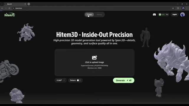 One of the first things you'll notice about Hitem3D is its remarkably clean and intuitive interface. There are no overwhelming menus or confusing buttons – just a simple upload area ready for your images.