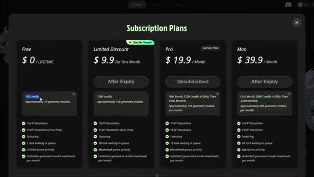 While you can certainly try Hitem3D for free with the initial credits, if you're serious about incorporating 3D model creation into your work or business, investing in a paid plan is a smart move. Plans start from a very reasonable $9.90 per month, which grants you 1,000 credits – enough to create approximately 100 geometry models. This is currently a limited-time offer, so it's worth grabbing sooner rather than later!